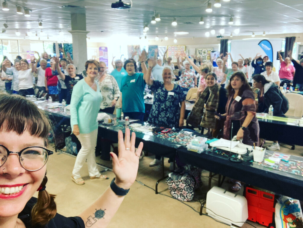 I’d long heard about Quilt National and the exhibitions there, but had never had the opportunity to teach anywhere near Athens, Ohio, so hadn’t been. Thankfully, Shauna lives only a couple hours away and three of us took a day trip to visit. The space is beautiful and filled with a wide variety of quilts and other exhibits. Their Quilt National 2025 exhibition is on tour now (and will be at QuiltCon!) and in May, the Quilt National Call for Entry opens for exhibition from May to September 2027.