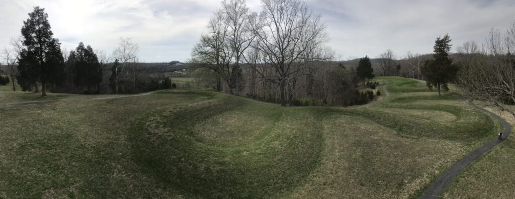 On that same trip, we got to see some of the burial mounds (which Hawke and I have also seen in Iowa). Native American mounds dot the landscape in southern Ohio and the largest known effigy mound is Serpent Mound near Peebles. There are many unanswered questions about the mounds, their purpose and who exactly made them, but continual research is leading to new understanding.