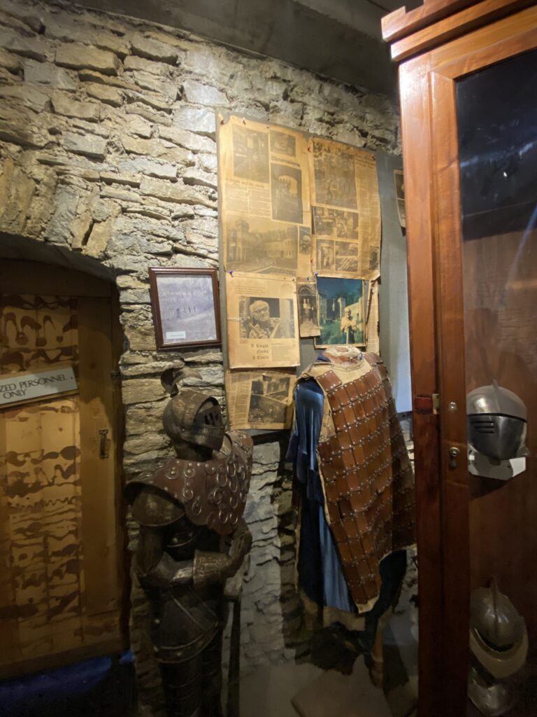 In central Ohio, we found Loveland Castle, one of those strange homes built slowly and continually for decades. Harry D. Andrews spent more than fifty years building the castle with handmade bricks. He was so fascinated by medieval times he formed and led the Knights of The Golden Trail, an organization that still runs the tours there.
