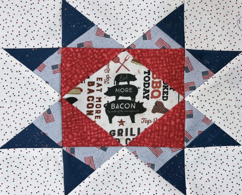 Choose a fun center fabric (I wanted to highlight the bacon and bbq!) and play with the values on the points.