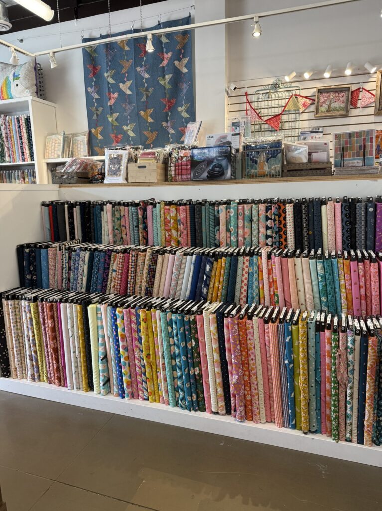 • Sew Let’s Be Quilty in Pentwater has modern written all over it with shelves filled with Ruby Star Society, Lori Holt and Tula Pink with lots of bag-making supplies and so many books!