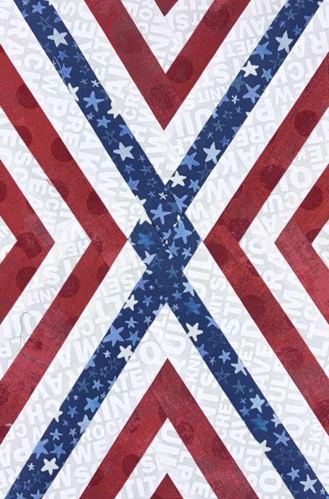 Use long strips to make this easy, trimming as you go to avoid cutting strips too short (ask me how I know-LOL). You’ll have plenty with the fabric outlined in the pattern, so be generous. And don’t forget to trim before sewing on your next pieces. You’ll see why if you watch the tutorial.
