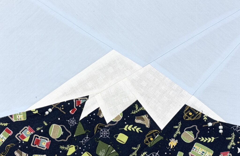 This deep love and appreciation was the inspiration for the Oregon block: “Mt. Hood Means Home.” To get a proper representation of its iconic shape, I used foundation paper-piecing. It’s slightly more complicated than many of the FPP blocks we have done for the Quarter Millennial Quilt sew along, but it’s great practice to work toward doing more epic scenes like Violet Craft’s Elevated Abstractions: Mt. Hood or Three Sisters.