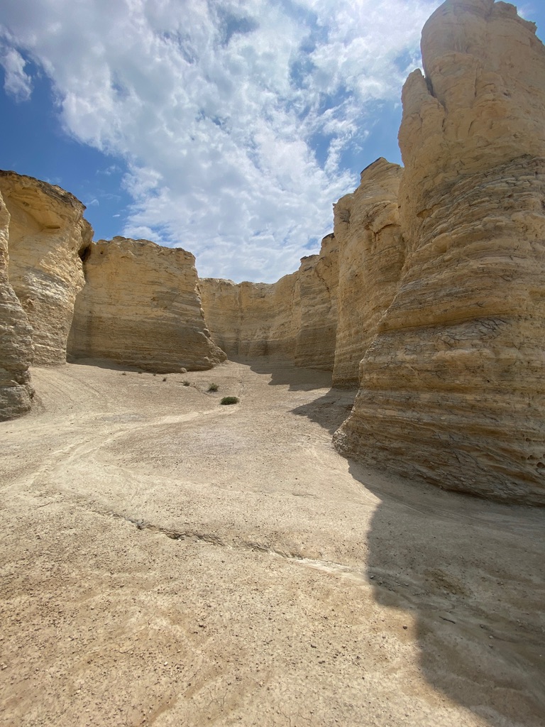 We stopped in Dodge City (particulary just to say we “got out of Dodge”), then made our way north to Monument Rocks, one of the stranger sites in Kansas. The area once was covered by the Western Interior Seaway (from the Gulf of Mexico and into Canada), but when the waters receded, it left these bizarre marine deposits. The formations are so out of place, it’s almost unbelievable at first glance.