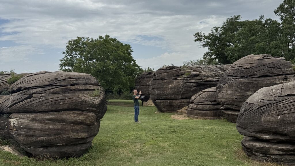 One of the other weird things we came upon was in Minneapolis–Rock City. The sandstone spheres were formed mainly from sand deposited along the edge of a sea that covered the western half of Kansas about 100 million years ago and are now left scattered on the prairie.