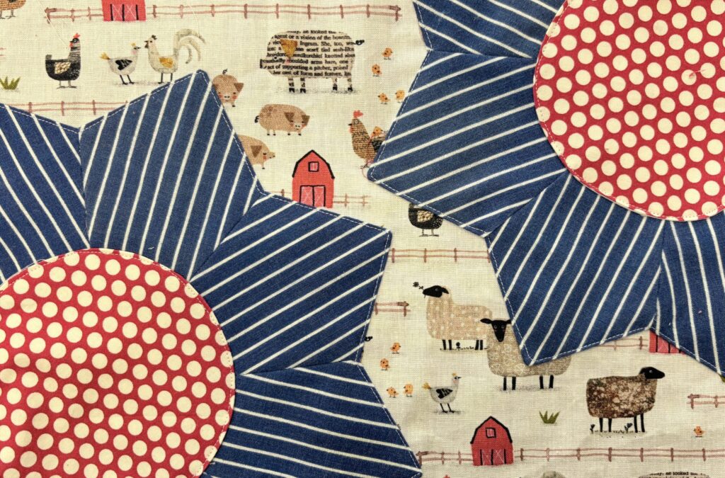 Kansas is known as the Sunflower State and I wanted to make something to recognize that with this quilt block. We use a dresden plate style technique to make the petals. Then add the petals and center to the background with an applique stitch.