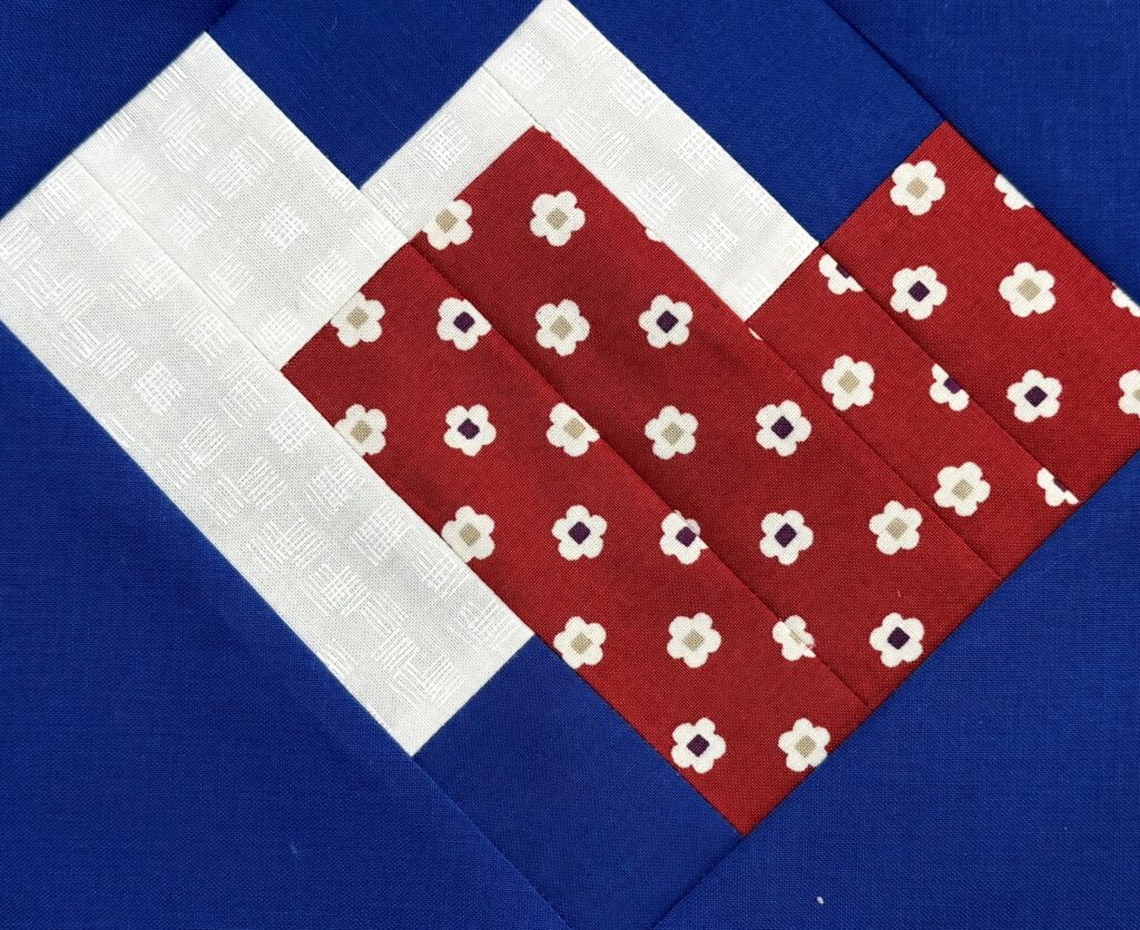 I spent quite a bit of time trying to find a block for Virginia, but finally decided to design one of my own, inspired by their tourism slogan: Virginia is for Lovers. The two hearts are pieced in strips with triangles transforming it into a rectangle.