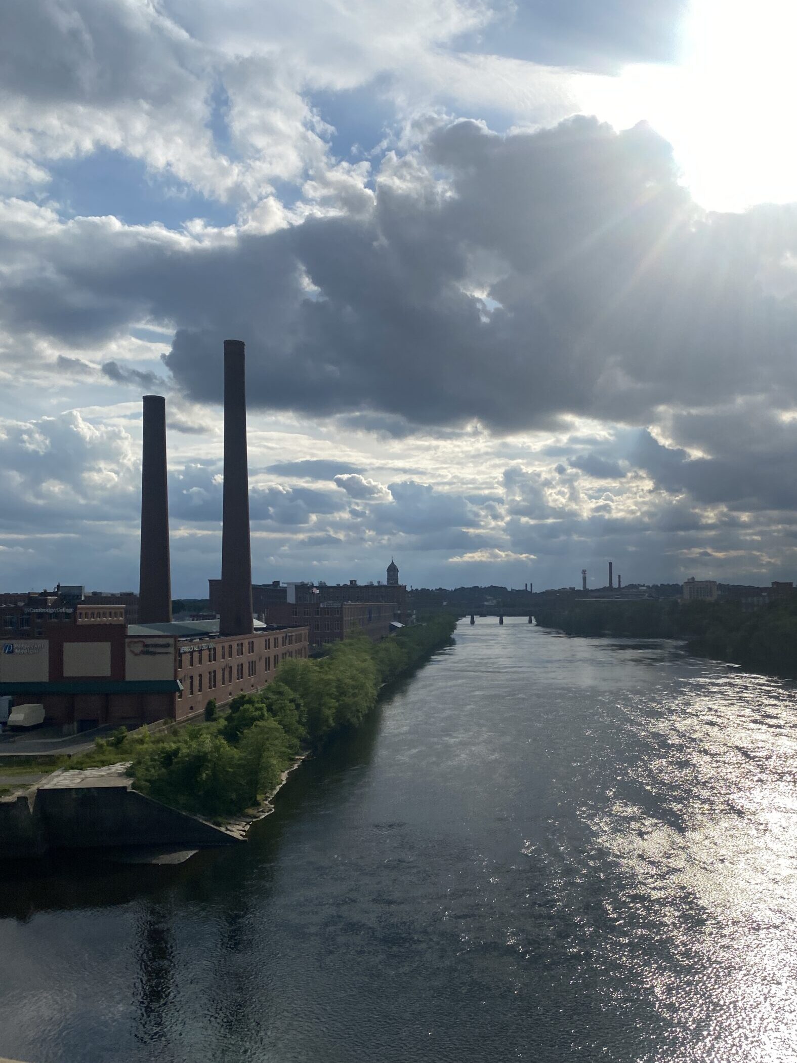 Scattered throughout the New England area are the remnants of the textile industry. The smokestacks still stand, though many of the buildings have been converted to loft apartments. Often constructed near the rivers (for both transit and water power), they dot the landscape as you drive through.