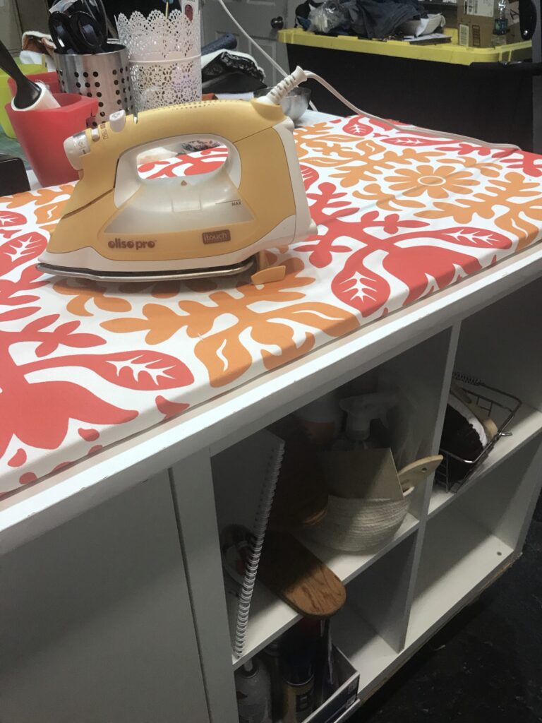 The leftover from the plywood was the perfect size for a ironing board and I’d lost space for the standalone. I used Leah Day’s tutorial, using two layers of batting covered with canvas. In a weird coincidence, the fabric is actually from IKEA, as well, it’s just been sitting in my stash for about five years.