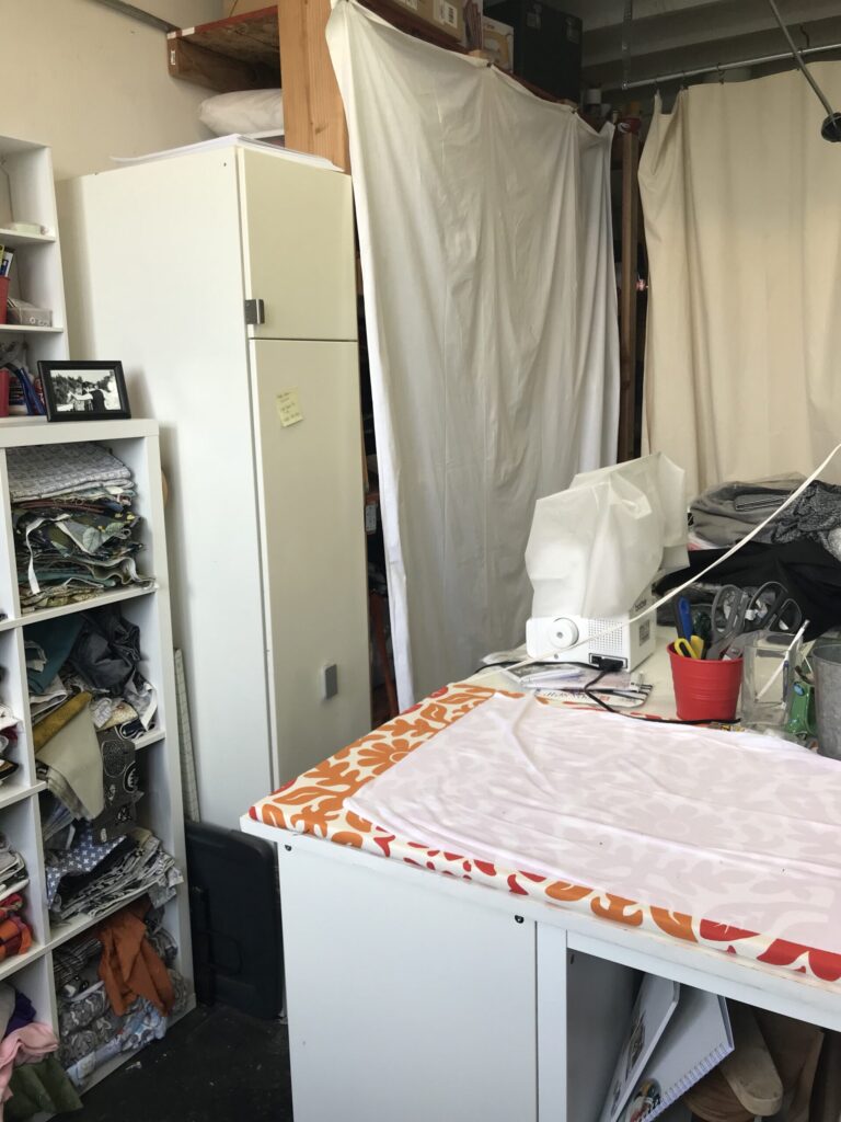 I had moved down to Los Angeles in 2016 with my sewing machine and a few boxes of fabrics and tools. Since then I’ve used a mish-mash of tables and storage found in the hall, left by Luke, or bought at IKEA. It’s been less than ideal.